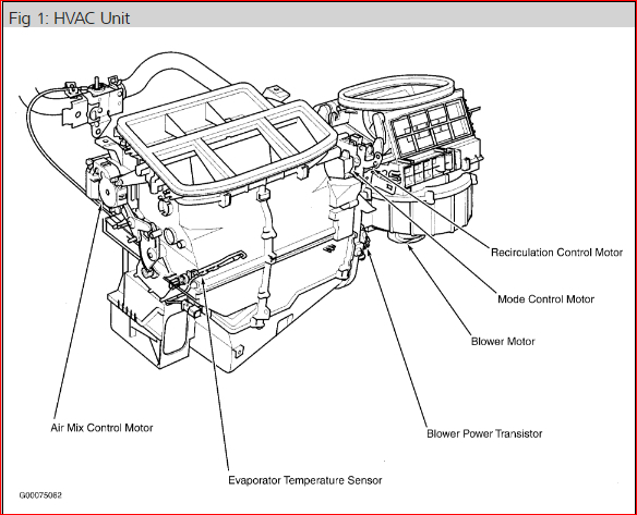 It sounds like your blend door actuator is not working. It is an electrical motor mounted in your HVAC box that moves/controls air flow through the ducts. I am attaching a picture of what it looks like and a tutorial showing what is involved to replace. Hope this helps and feel free to ask any questions.Thanks for using 2CarPros.