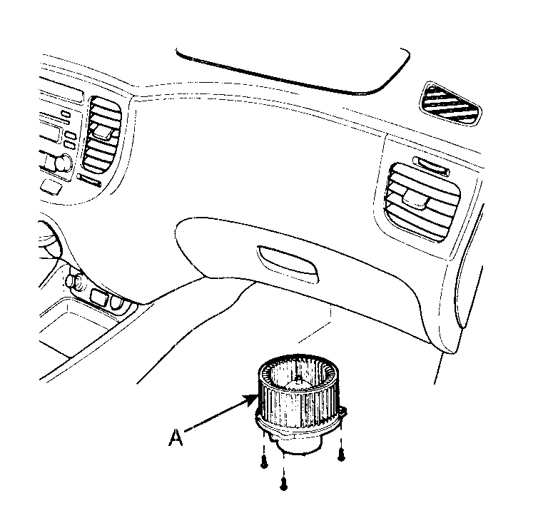 3. Remove the blower motor (A) after loosening the mounting screws.