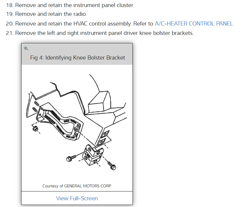 21. Remove the left and right instrument panel driver knee bolster brackets.