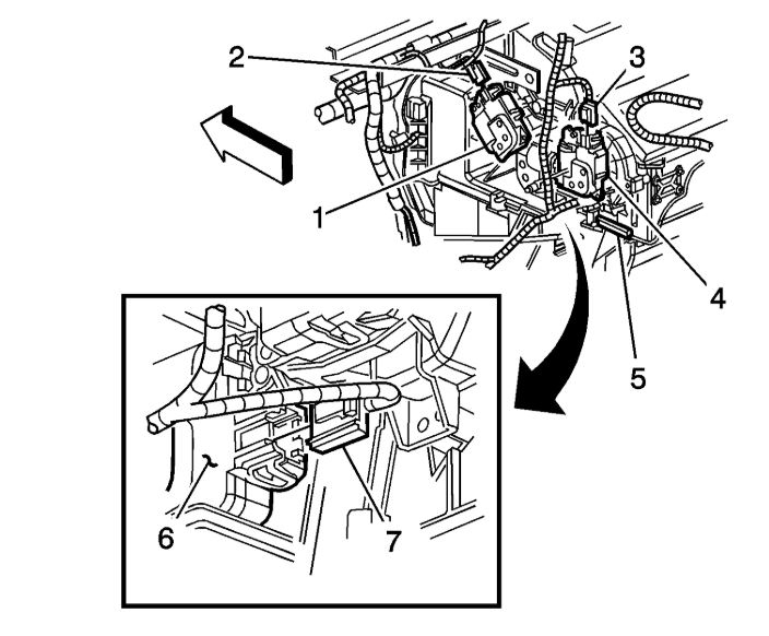 3. Disconnect the air temperature actuator electrical connector (7).