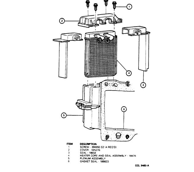18. Remove retaining screws from heater core cover, then the cover from plenum assembly.