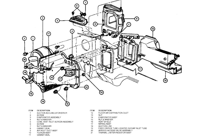 15. Remove push fastener attaching floor air distribution duct to left end of plenum, then remove floor air distribution duct.