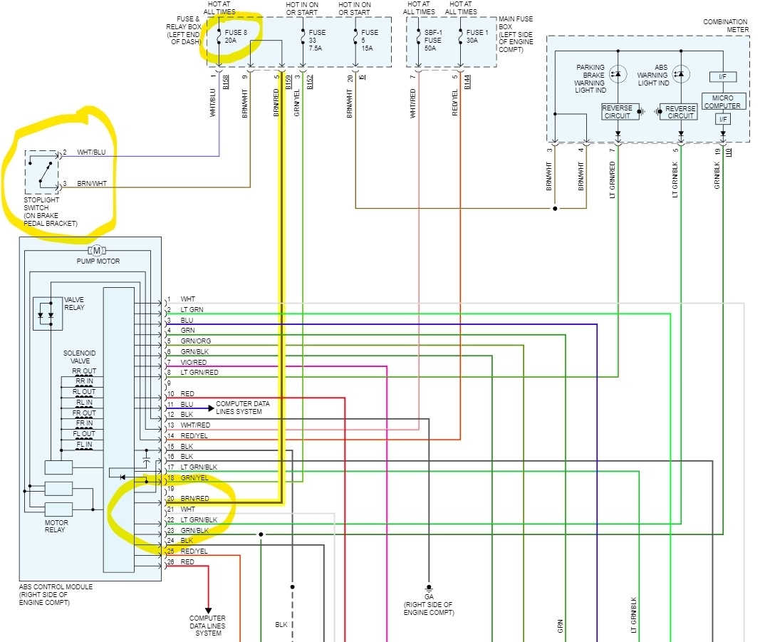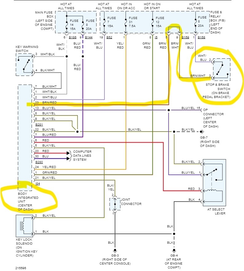 I have a problem with my break light fuse blowing, and the shifter also sticks in park when this happens. I have to bypass the shift solenoid to drive it. I have checked the brake light switch, the bulbs themselves, and chased wires as far as my knowledge would allow....so I have come to the conclusion that it is the shift interlock solenoid, and I was wondering if there is a way to bypass this while still having the brake lights work? I was also wondering if you could provide me with a wiring diagram?