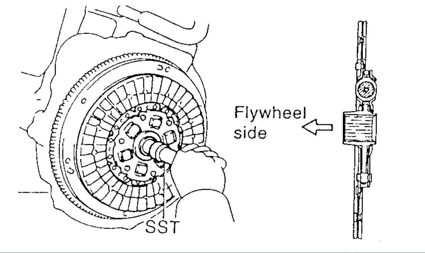 a. Insert Special Service Tool (SST) 09301 - 00220 in the clutch disc, and then set them and the clutch cover in position.