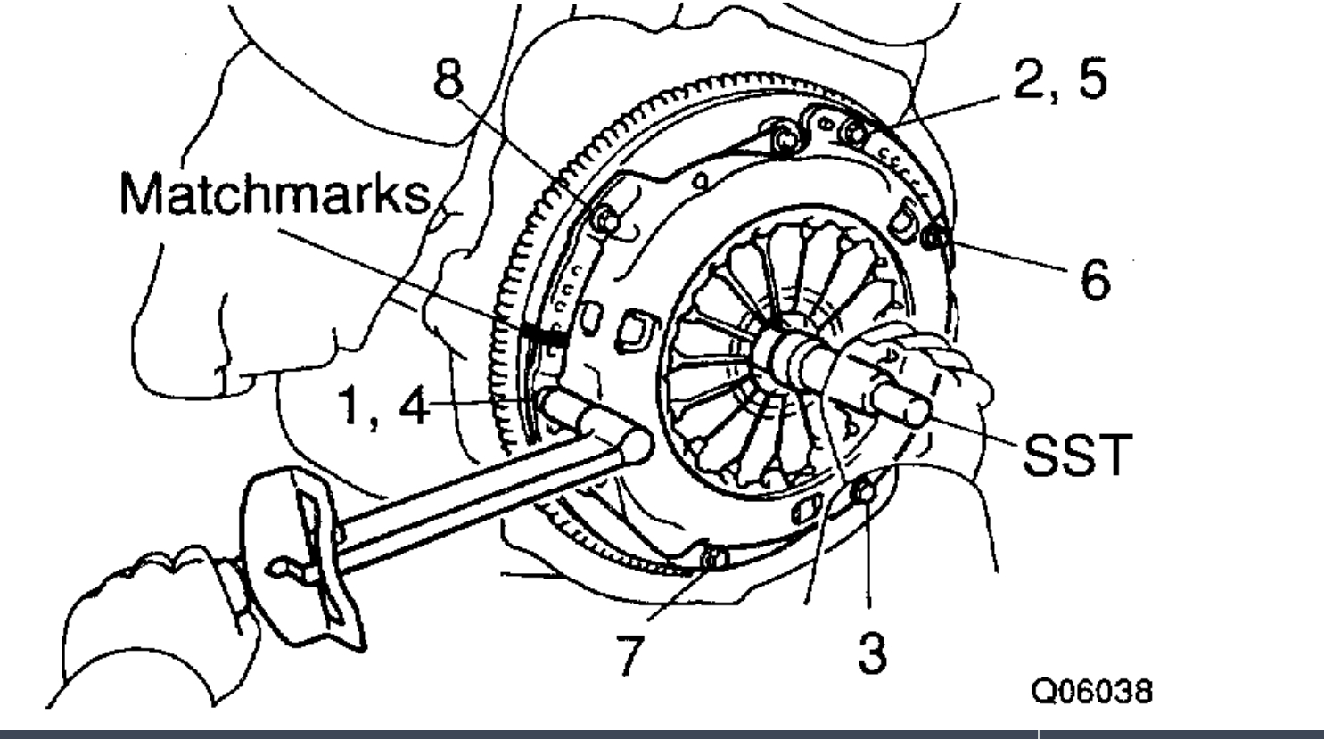d. Torque the bolts on the clutch cover in the order shown.