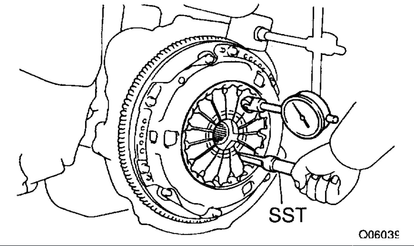 Using a dial indicator with roller instrument, check the diaphragm spring tip alignment.