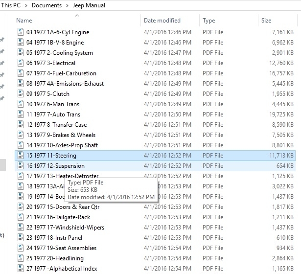 I have the whole '77 AMC Manual on disc (now on my computer), I also have a really worn '79 AMC 2" thick paper manual.
