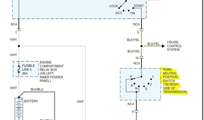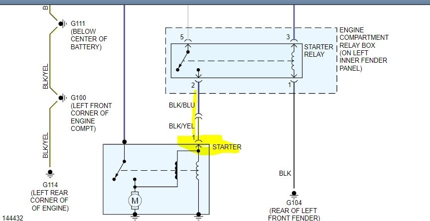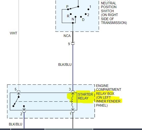 If you take a look at the pics I attached, I started with a picture of the starter relay. Then I cut parts of the schematic which shows for power to reach the smaller wire on the solenoid (the S terminal) it has to go through the park / neutral switch, then the starter relay, and then it makes its way to the starter. The only time that smaller wire should have power is when the key is in the start position. If there is no power to it, the starter won't engage.