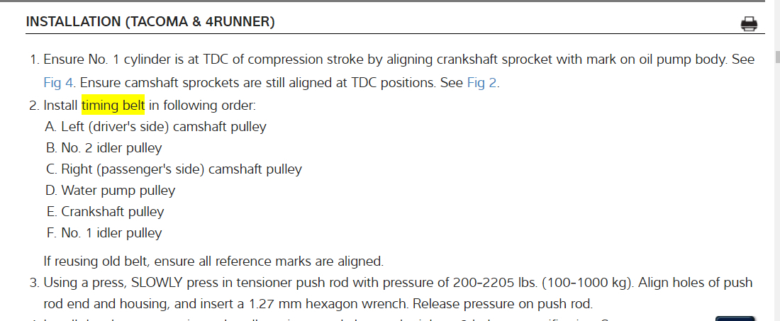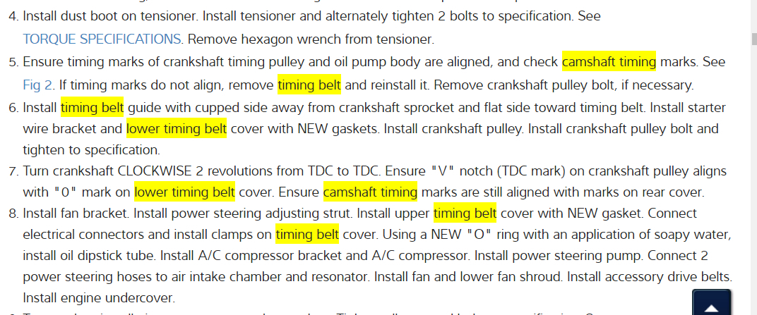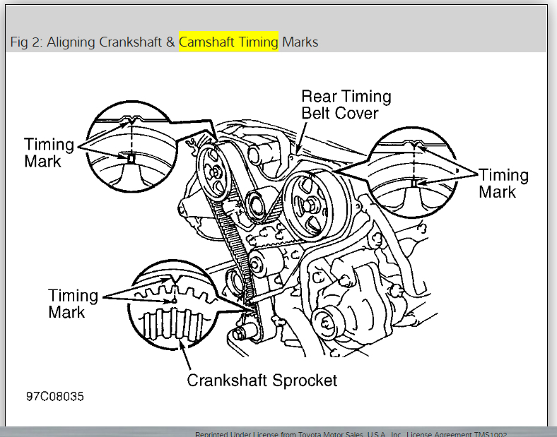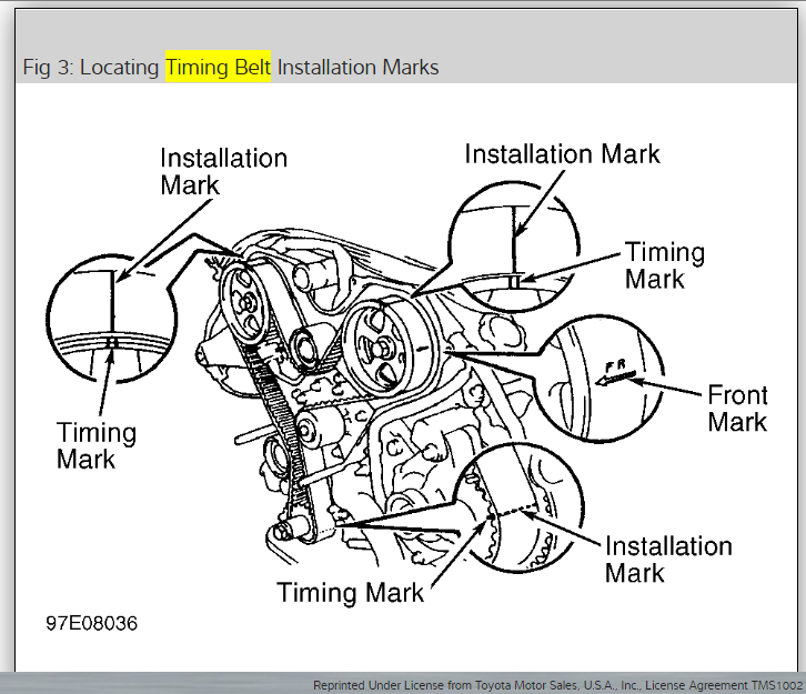 I have included the factory directions for the timing belt installation in the diagrams down below. Please go through them and get back to us with what you are able to find out, please. If you have any other vehicle questions, please feel free to ask. It's what we are here for.