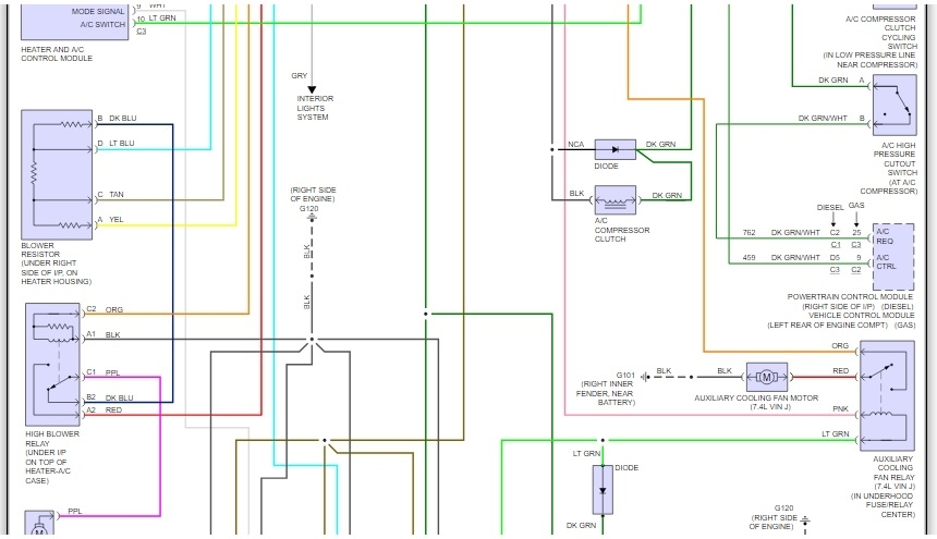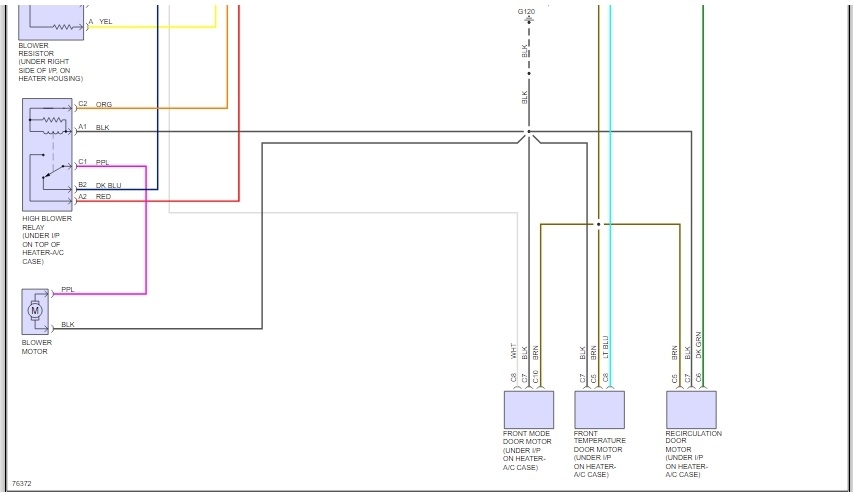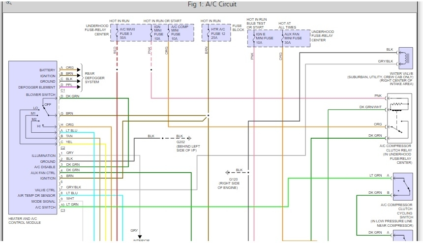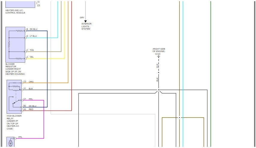 So far I have gotten you the "A/C" and "Heater" diagrams ('cause maybe the wire you described might go to either of the system)