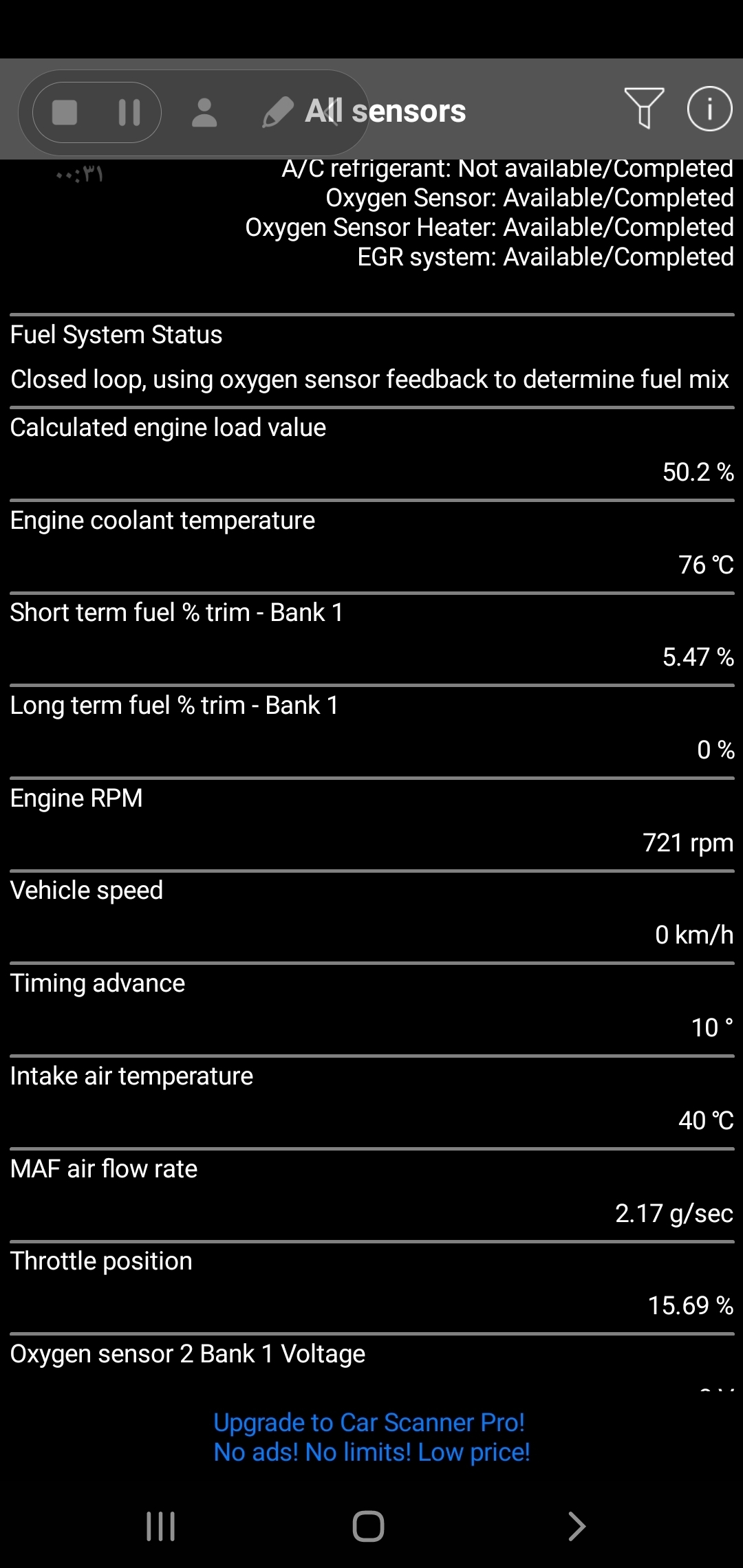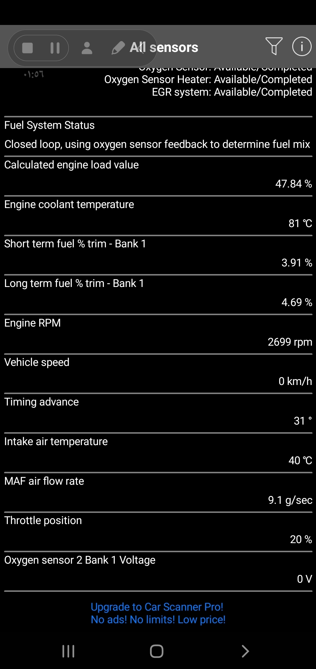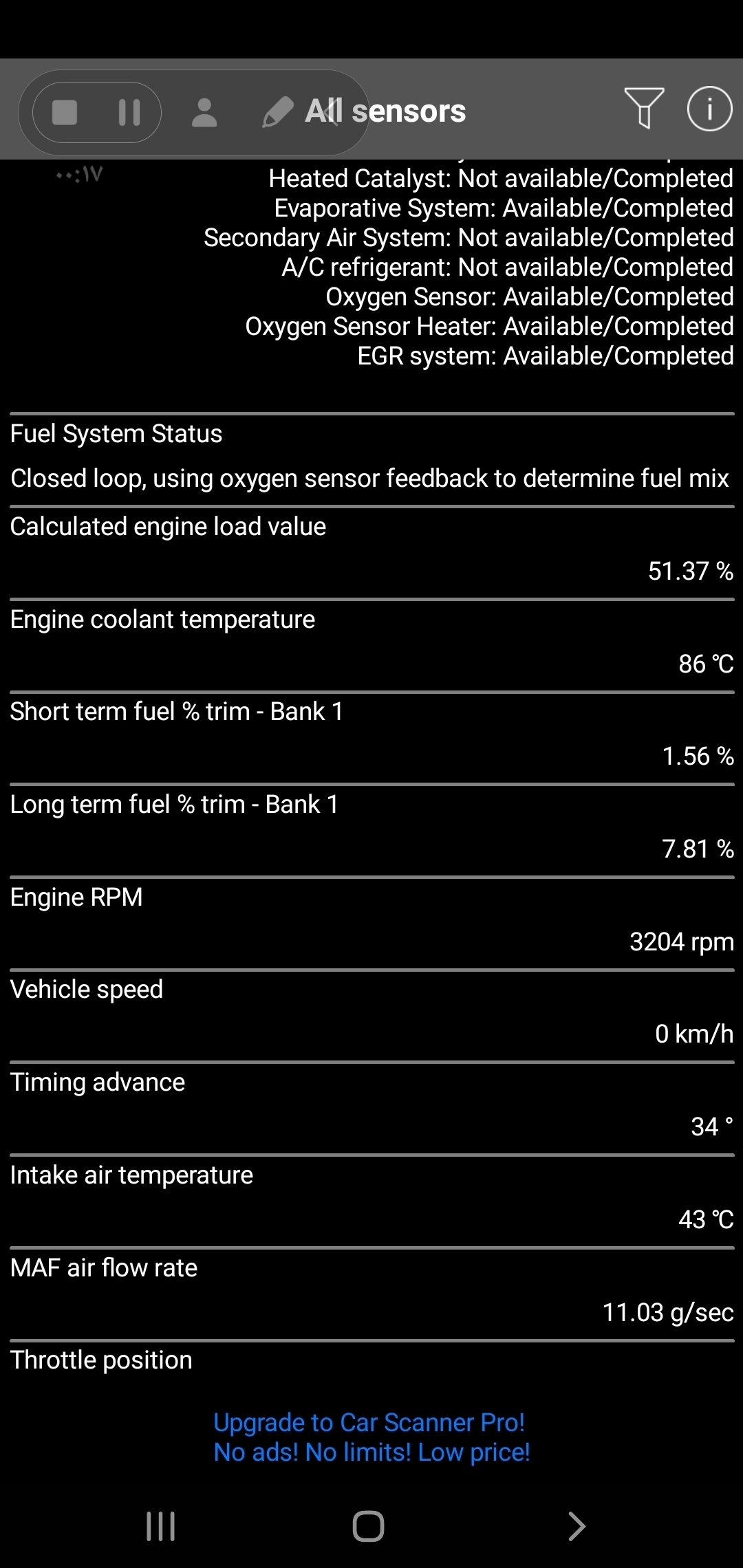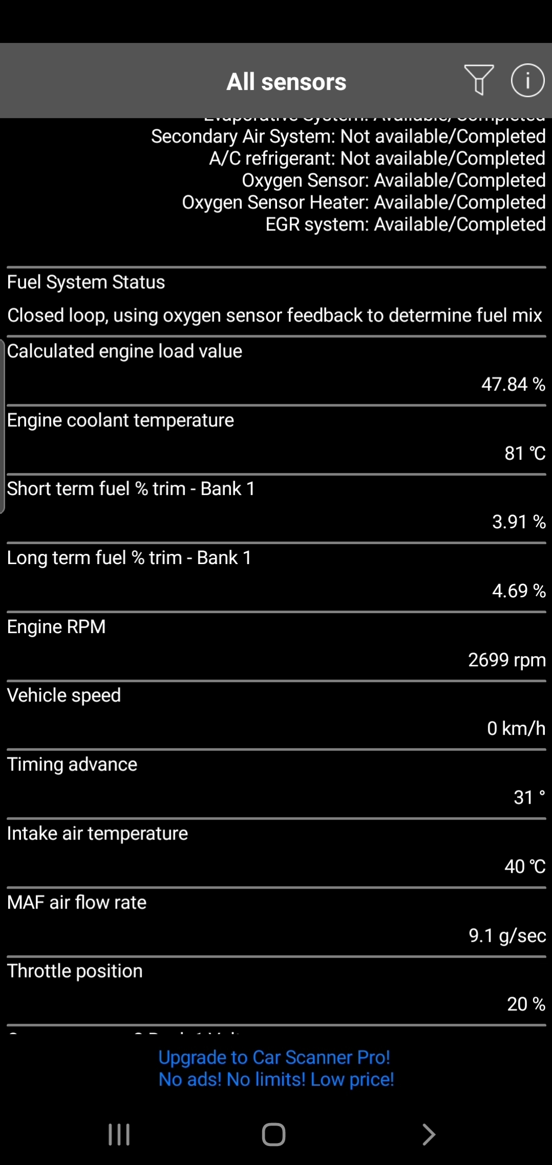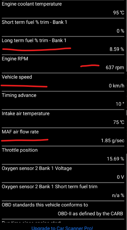 Can you give me another run through that Data when the car is fully warmed and has been running for about 15-20 minutes? I just want to see if any of these numbers change much. And how is it running right now, what's the outside air temperature where you live right now?