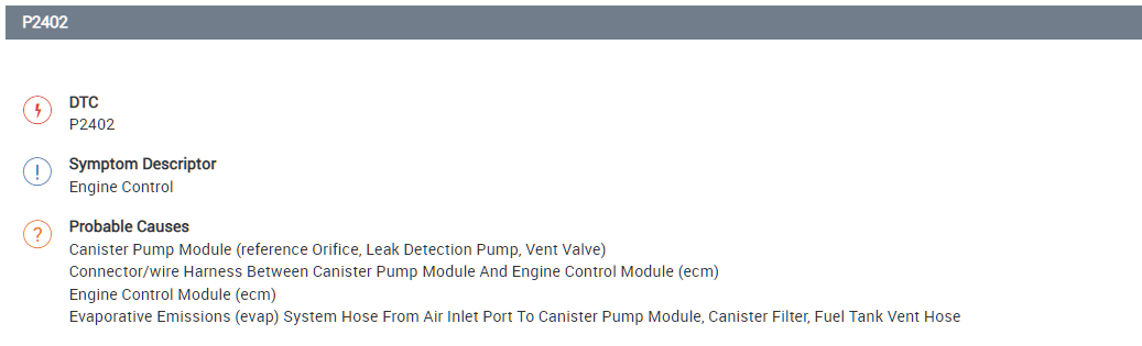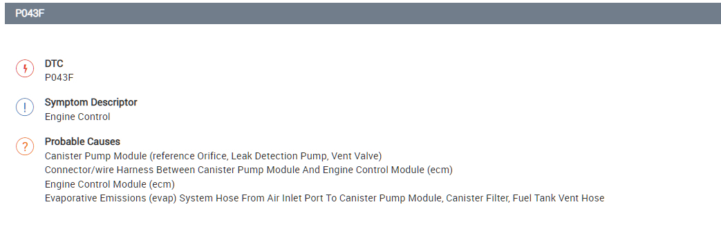 No, that won't work, they are different part numbers. There may be differences in fuel tank size and canister size. The two vehicles have different size engines. But are you sure you don't want to have a shop take a look at the system, you had a vent valve you said was stuck closed and you got it freed up, but the computer is still setting codes for it? Plus, the live data while at Idle and driving indicates other problems with engine. The almost %10 positive Fuel Trim at idle points to a vacuum air leak because the Fuel Trim starts getting better with throttle open (driving). Plus, the Mass Air Flow sensor is not reading correctly, 1.8 grams per second at idle is too low. Thats a sensor under reporting air flow.