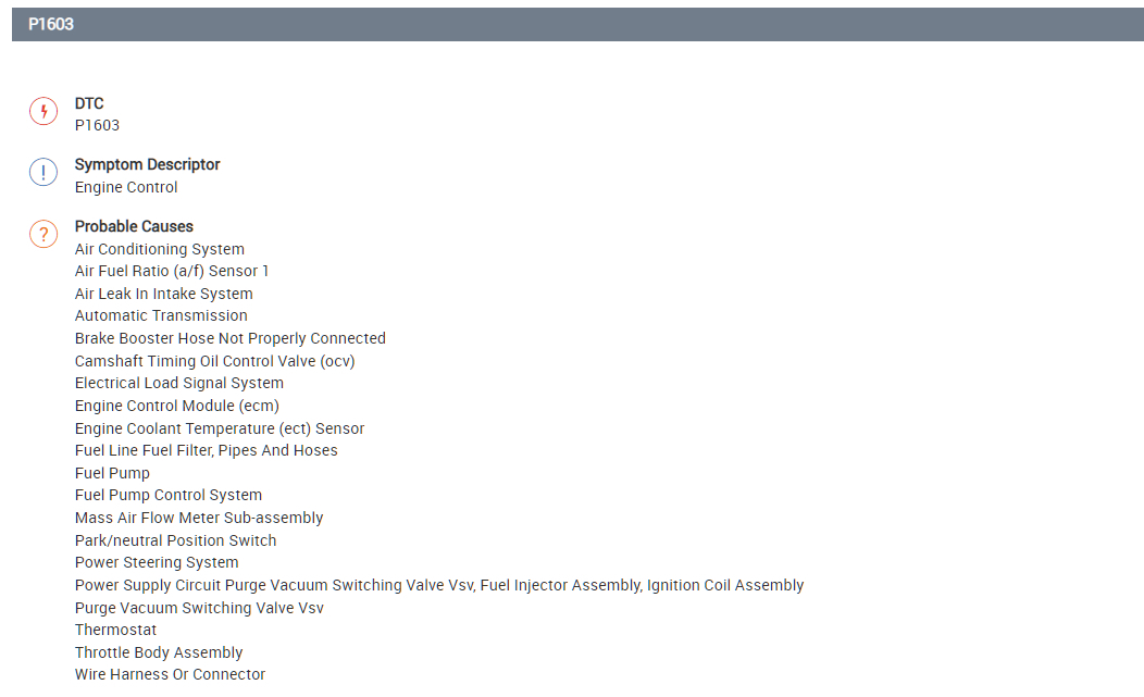 When did the vehicle stall out on you? The P1603 is a new code and is a result of the Evap system issues. This code is the Engine stalling out (below 200RPMs) without the Ignition Switch being turned off. You need to take care of the Evap system....