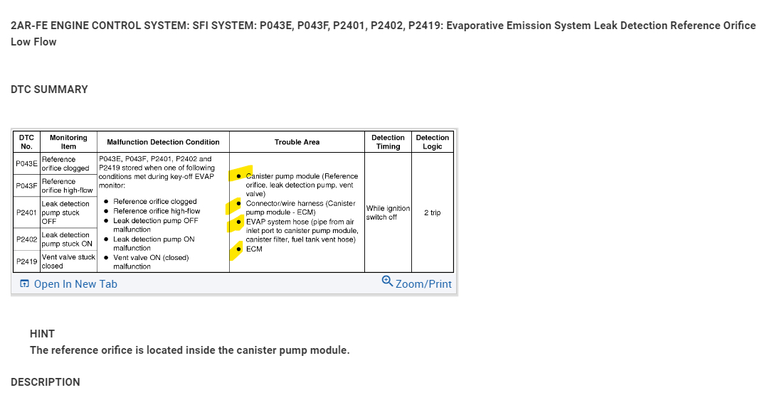 OBDII: Evaporative emission (EVAP) leak detection reference orifice - low flow
