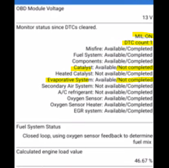 So, the Readiness Monitors have not been able to pass the self-tests. For some reason the Evap has not either, but the Evap Monitor has to be certain conditions to run its self test. Most have to have a certain amount of gas in the tank, a certain amount of cold soak (off time) has to have gone by, things like that.