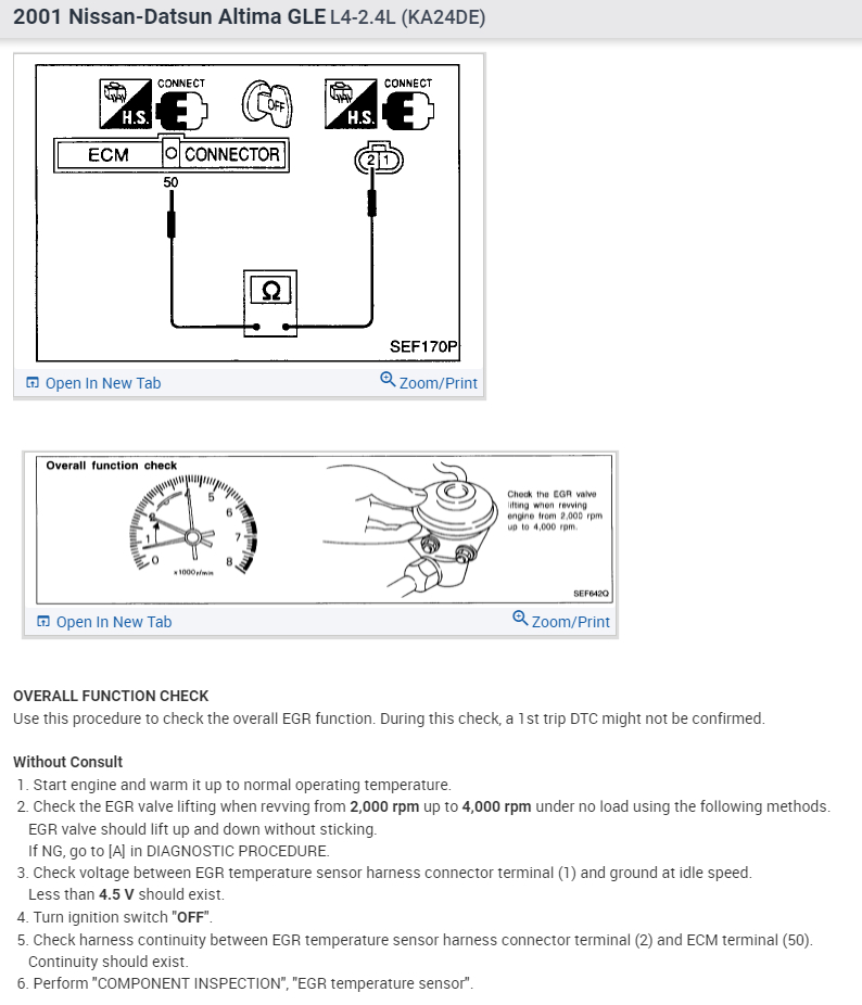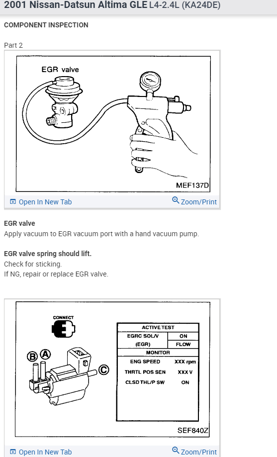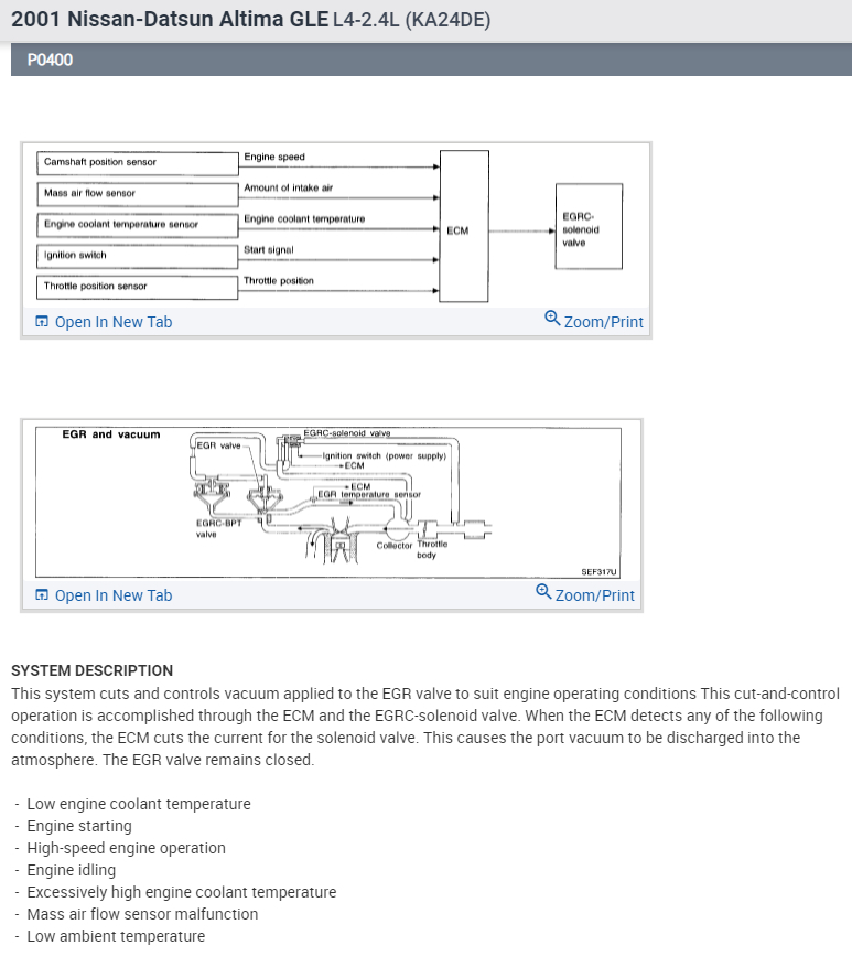 About a year ago in my car, the engine light appeared. I used a scanner to try and find out the problem, and it returned a P0400 code. I first checked the EGR valve, and it appeared to be stuck open a little bit. Despite cleaning it using a carburetor spray, it was still stuck open. So, I bought a new EGR Valve and reset the engine light, only for the engine light to come back again after driving it for about 30 miles. I even tested the EGR temperature sensor, and it worked just fine. I'm not sure what else I am supposed to check.