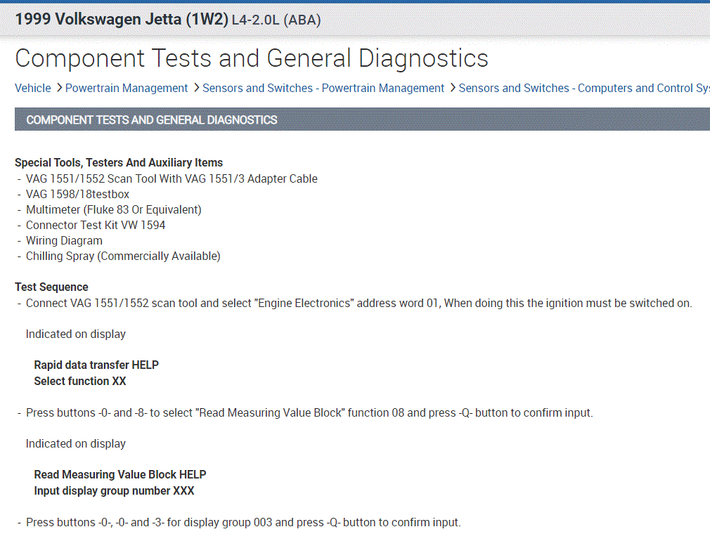 Other than that, you need to perform the diagnostics located below. It requires specific VAG tooling to complete. If you look at pic 1 below, it lists the things needed.