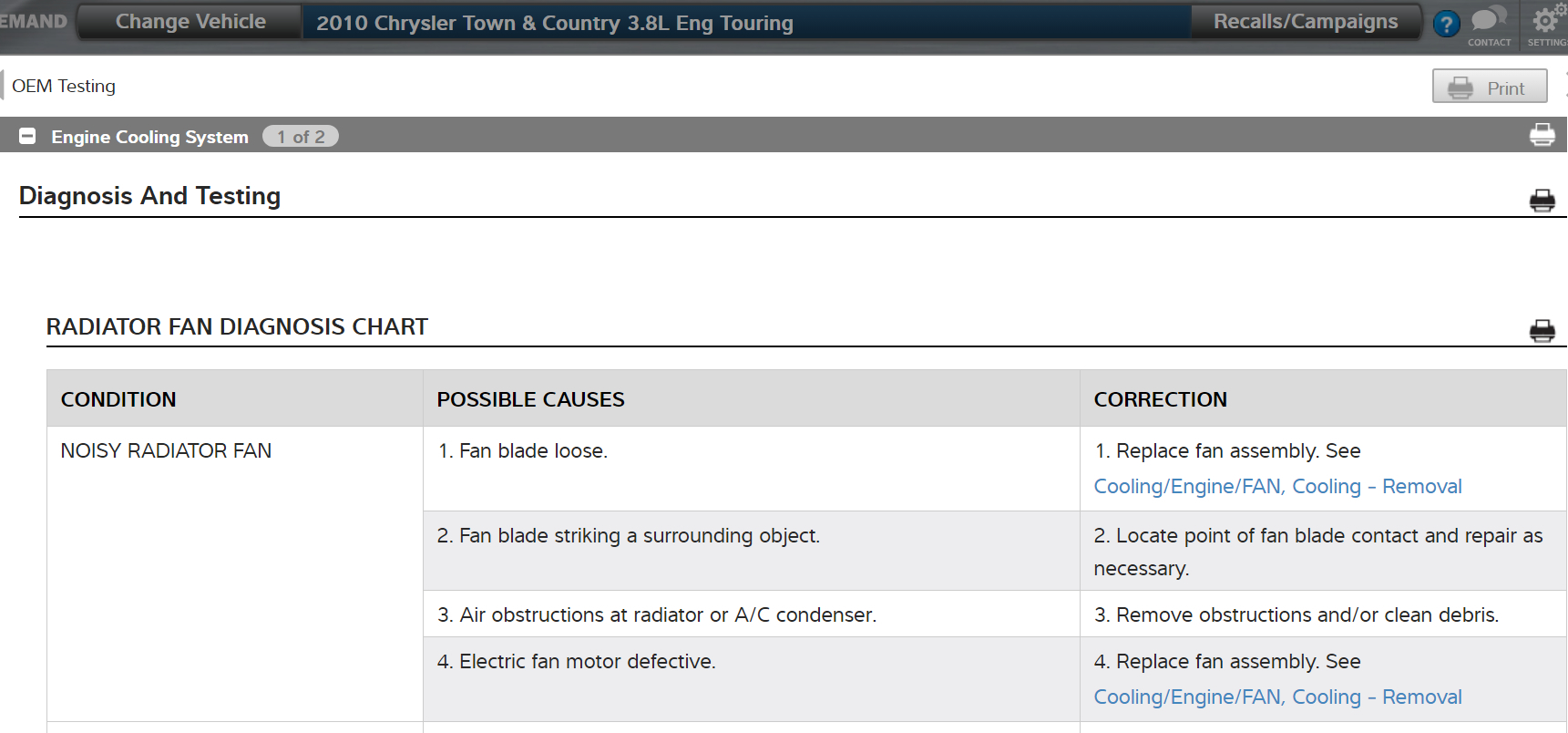 First the fan fuse blew - I replaced it. Then the passenger side fan smoked; I mean it - there was so much smoke I couldn't see. Pulled the fuse so I could get home. Disabled the fan by disconnecting the cable to the fan motor and replaced the fuse. Ran it that way till the following week when the replacement fan assembly came in. But in the meantime the cel came on - a P0480 code...cooling fan 1 control circuit malfunction. I replaced the fan assembly but the cel light is still on, and the fans are still not functioning. I thought the cooling fan relay might be bad but I'm having difficulty testing it without a wiring diagram to help me.
