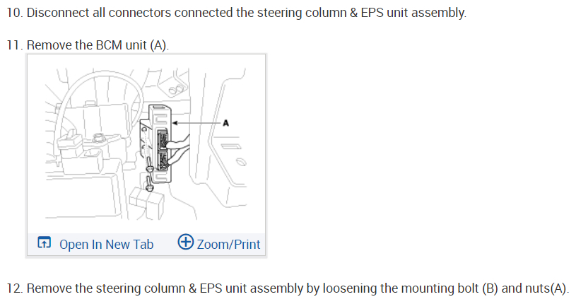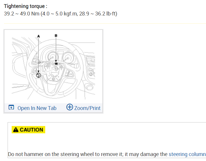 Replacement or repair of the Steering column