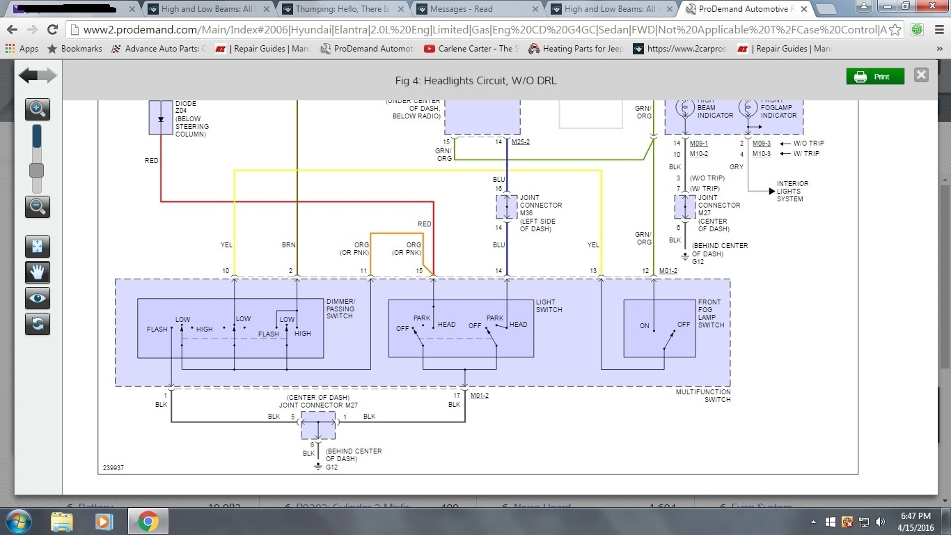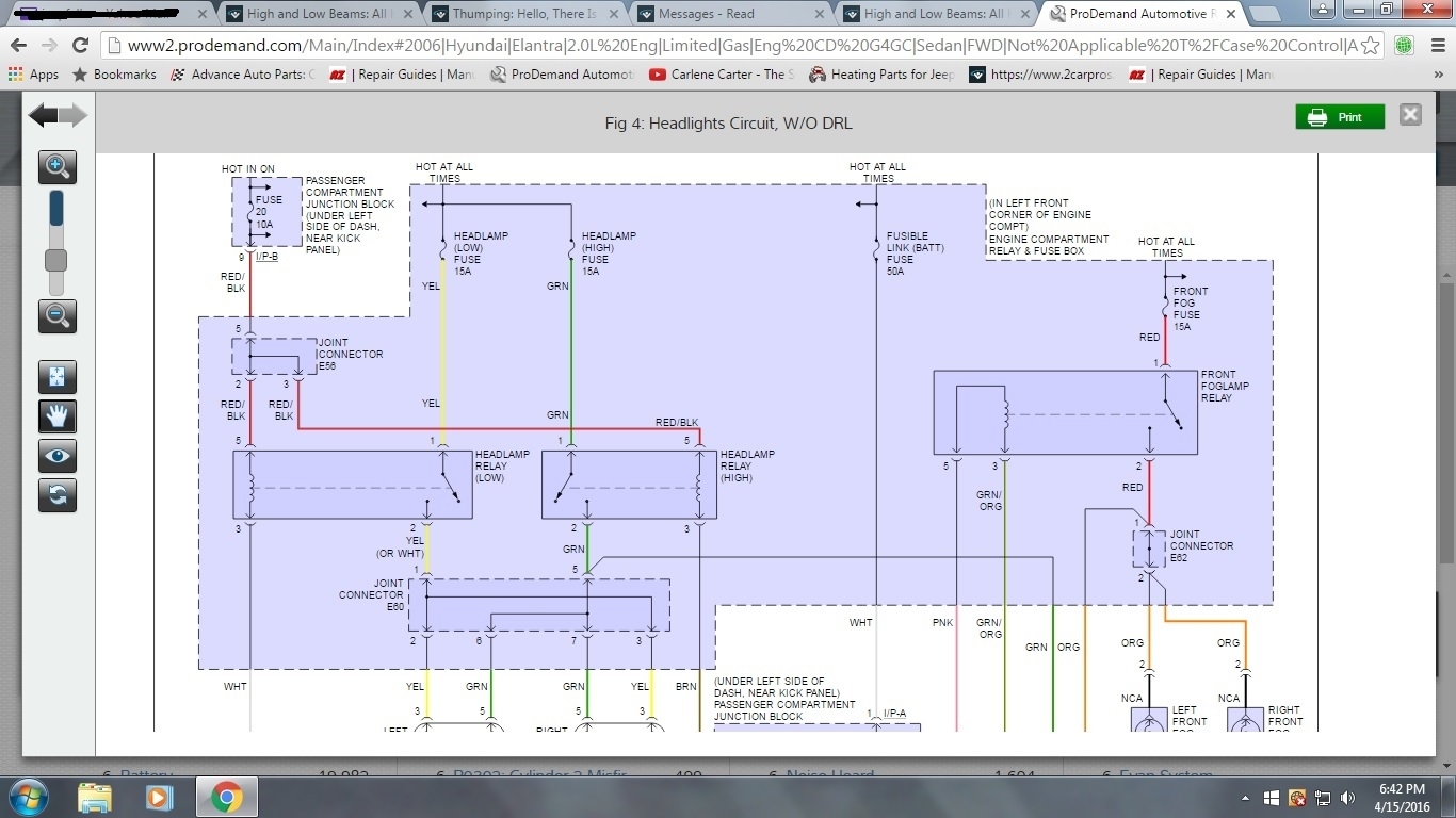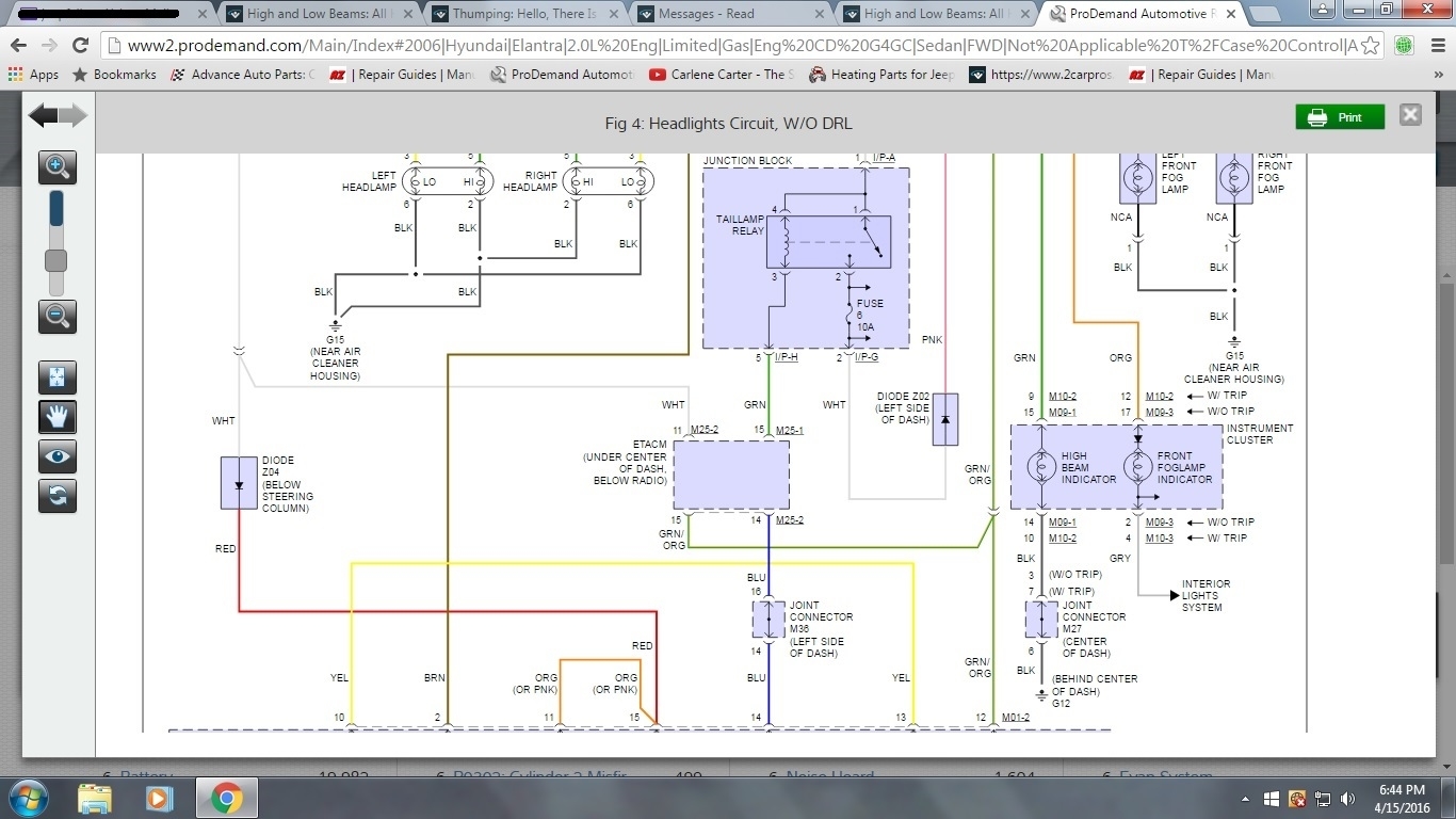 JUST SORTA GUESSING FOR A POSSIBILITY. LOOK AT THE SECOND PIC, LEFT SIDE, BOTH HEADLIGHTS. THERE IS A GROUND "G15" SEE IF IT IS CONNECTED, MAYBE LOOSEN IT UP AND INSURE IT'S GOT A GOOD CONNECTION (IT'S LOCATION IS LISTED)