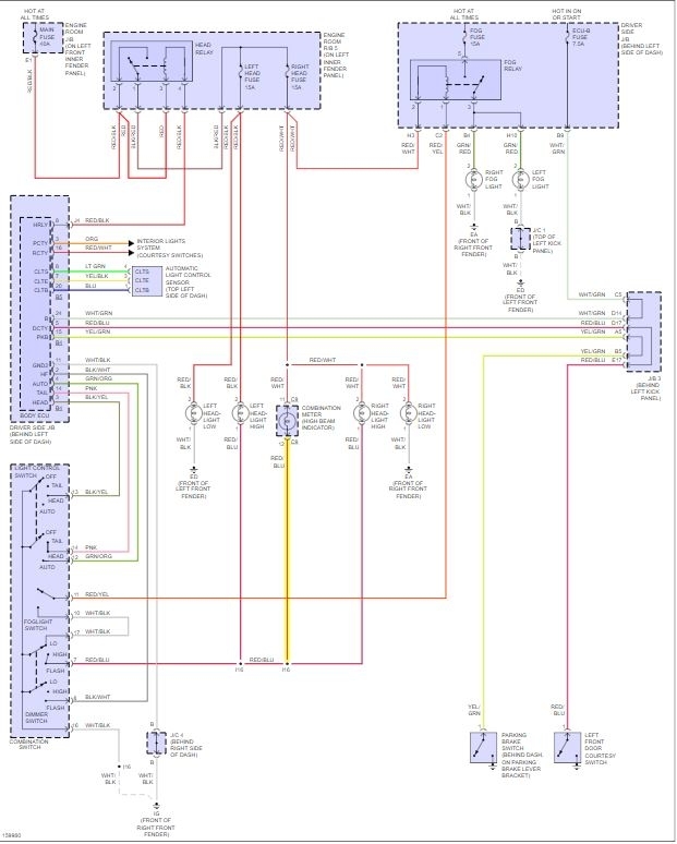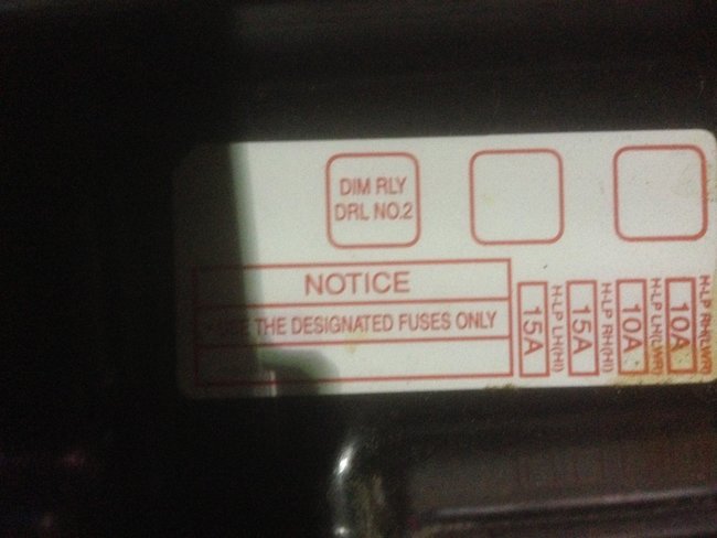 My car has four fuses for four lights and it does not have DRL (I searched all over the engine department but found no relay labeled DRL). I do not think I ever use it (DRL). Also, your DRL diagram shows that lower beams use 15A fuses, mine (from the photos I attached) shows that lower beams use 10A fuses.