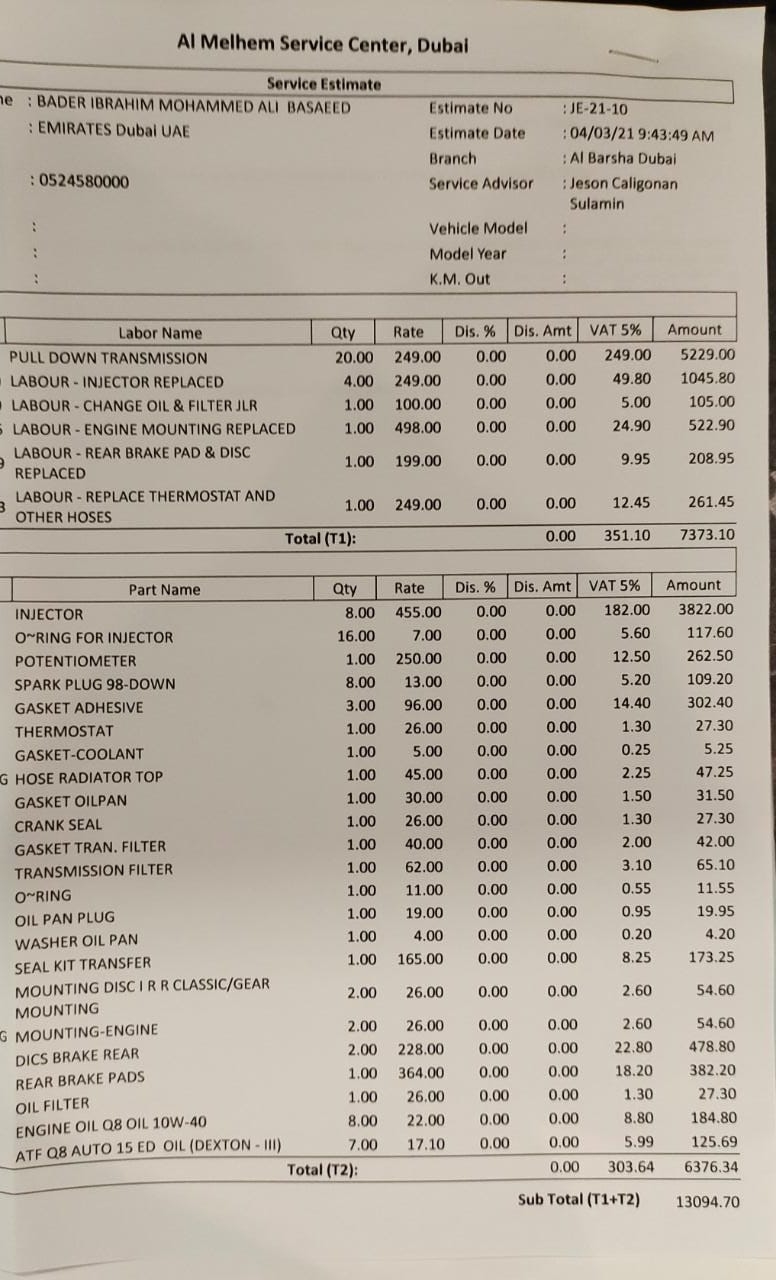 I just want to know if this quotation has reasonable labor prices or no, and what is (important to be changed in the car and what can be neglected) since some workshops they try to add unwanted stuff to fill up the list to increase the cost..