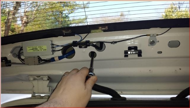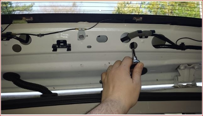 You need to remove the upper trim from the inside of the hatch. I attached pictures that will help explain this.