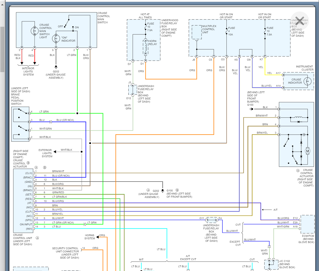 My Cruise Control has suddenly quit working. The green light in the button on the dash will not come on and it will not engage. (Makes me think there is no power going to it.) I thought that it may be a blown fuse but when checking the owner's manual I could find no fuse for the cruise control. I was told to check all of the fuses in the engine compartment and all of them SEEM to be good. I was also told to check all of the bulbs and all of them seem to be good also. I was going to wait until my tax refund came back and take it to a repair shop. First tried Haynes manual and all they said was to check fuses. Found you and decided to give you a try next.