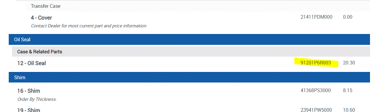 Hi, I have a leak from the transfer case. I will need to replace the O ring and my question for you is, did you know the part number for that seal or seals? Can you bring to me? thanks