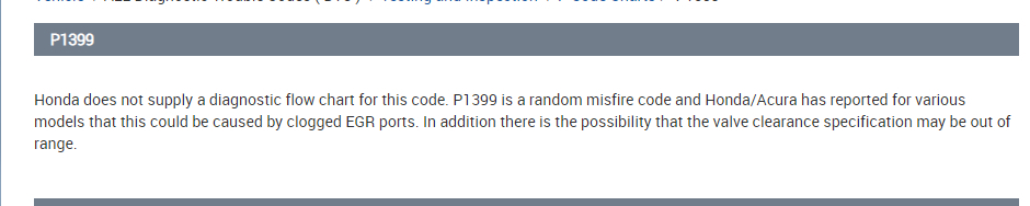 car started sputtering... not having power when i pressed on the gas. worse when i step hard or fast. have to back off the gas then procede. finally after months of this if threw the p1399 code. changed the cap and rotor, dind't fix.... changed the fuel pump.. still didn't fix. anyone ever been thru this for honda before.... strange stuff help please!