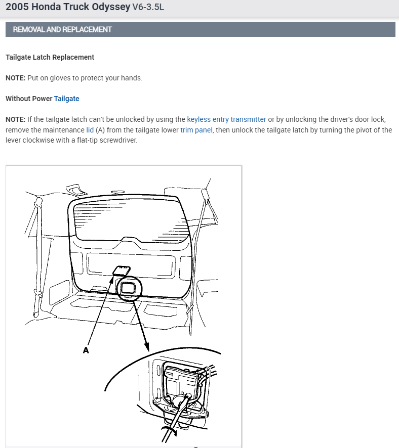 You can access the latch from inside the vehicle. On the liftgate inner panel there is an access panel that can be removed. This will allow you to get to the latch.