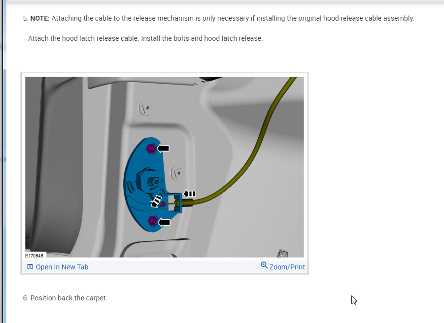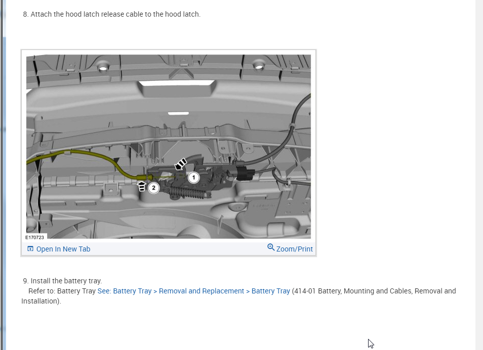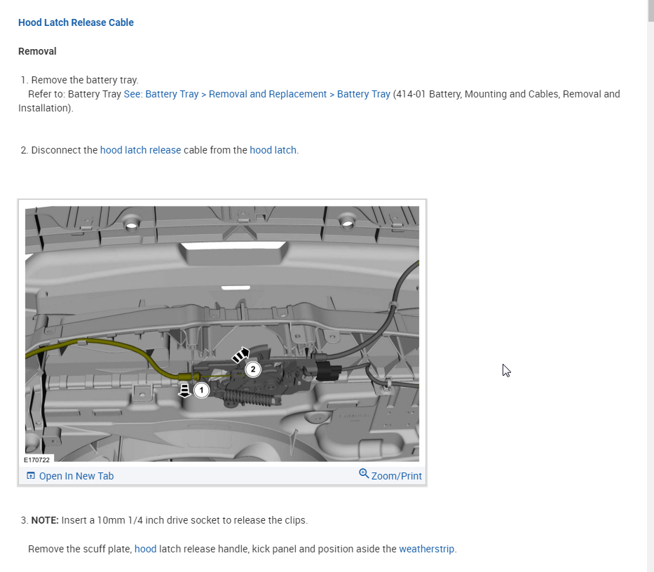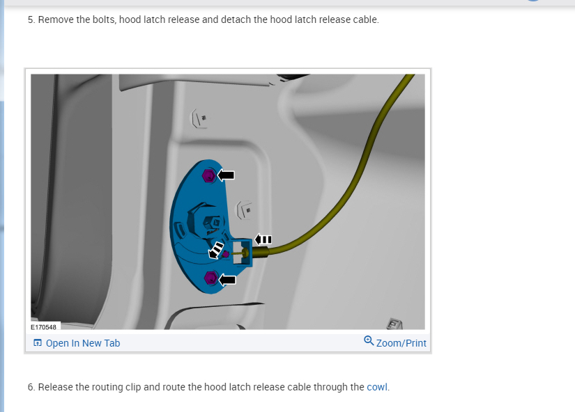 I attached the process for replacing the cable because it shows how to access it and if it needs to be replaced you have it. However, I am pretty sure if you pull the portion of the cable that I circled in the last attachment it will open the hood.