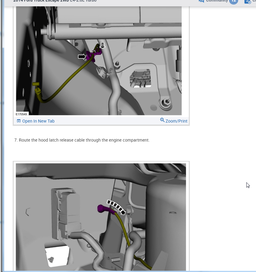 I attached a picture of the grille of a 2014 and the yellow part is the latch release. Do you have the same grille? If so, that will make it a little harder to know where to cut. Clearly if you are going to cut it then it doesn't really matter as it will need to be replaced. However, we want to try and find where this cable goes into the latch because we need to pop the latch from there. That cable connects to the latch as shown in the second picture at number 1.