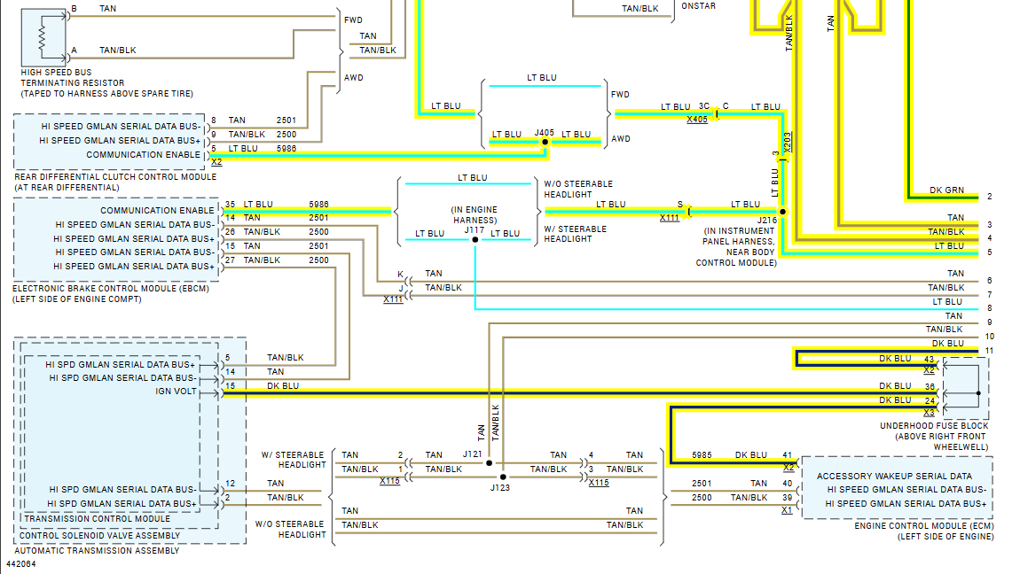 One other thing, the Right head lamp assembly (pass side) is tied into the HS can and it also communicates with the left head lamp assembly via a Lin bus,