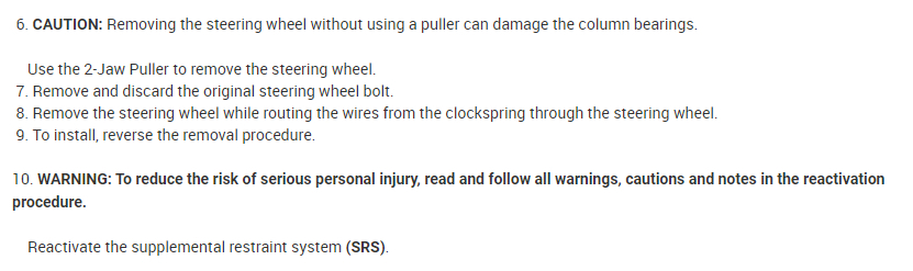 Here is the information you requested. Here is a tutorial showing how to replace a steering wheel: