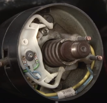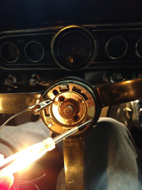 On the steering wheel with the horn ring removed, when testing for power the flat post on top that should be the ground, is not, the metal ring is the ground. when I connect between the contact and the ring I have power, between the contact and the flat post, nothing. what would cause this?