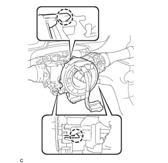 Disengage the 6 claws and 2 pins, and remove the spiral cable from the steering angle sensor.