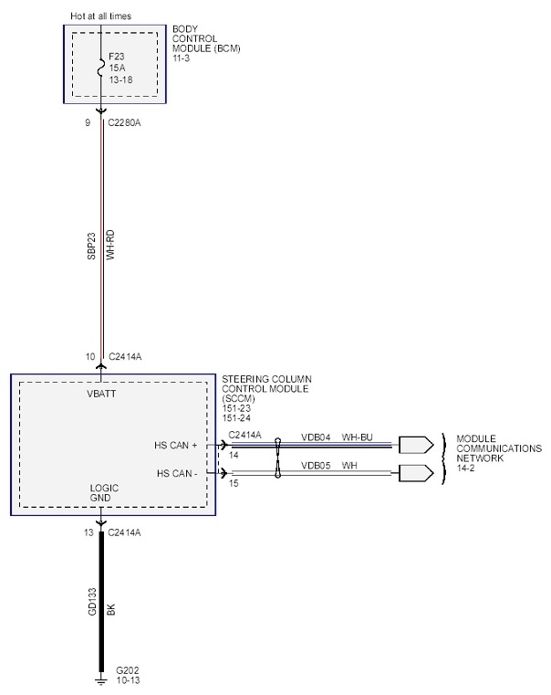 You can eliminate the horn switch wiring as a suspect by locating the Steering Column Control Module, (SCCM) and grounding terminal 1 in the 10-pin plug. That's shown with the red arrow pointing to it in the third drawing. If the horn turns on, there's break in that wire or the switch is defective.