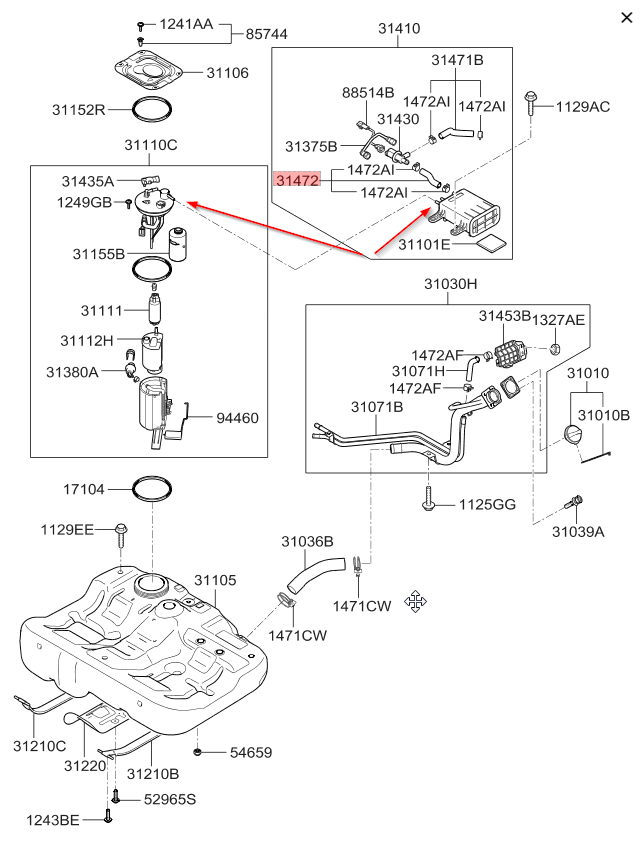 As for the fuel tank to canister line, I was not able to find a part number for this which means it is most likely just a bulk line that you can match the size and length to the bulk hose from parts store. As you can see with the attachment they don't list a hose for this connection.