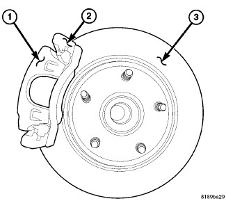 Remove and clean all rust and debris from the anti-rattle clip mounting surfaces (3) on the brake caliper adapter (2).