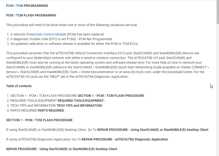 So if you had a PCM programmed with your VIN and you plug it in, it should work. You should not replace the WCM without performing a PCM replacement procedure because if you have not transferred the secret key info to the PCM, then it will not be there to transfer to the new WCM and your keys will not work. Then you will be required to replace both the PCM and WCM at the same time and select a new secret key information.