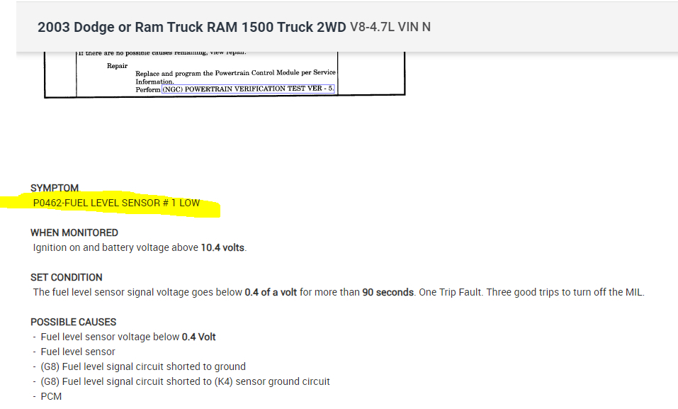 Interestingly, the code indicates an issue with the fuel level gauge circuit. So, I suspect we have a connection issue at the fuel pump module.