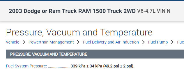 I attached the manufacturer's fuel pressure specifications below for you and a description of the code. Try what I suggested and let me know the results. I'm hoping for a weak connection, but the problem could be related to the totally integrated power module (TIPM).