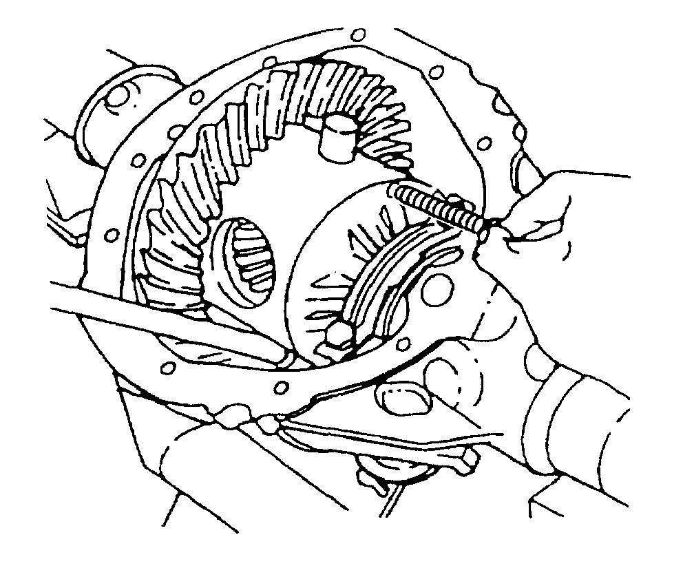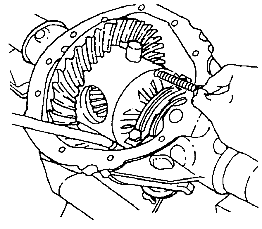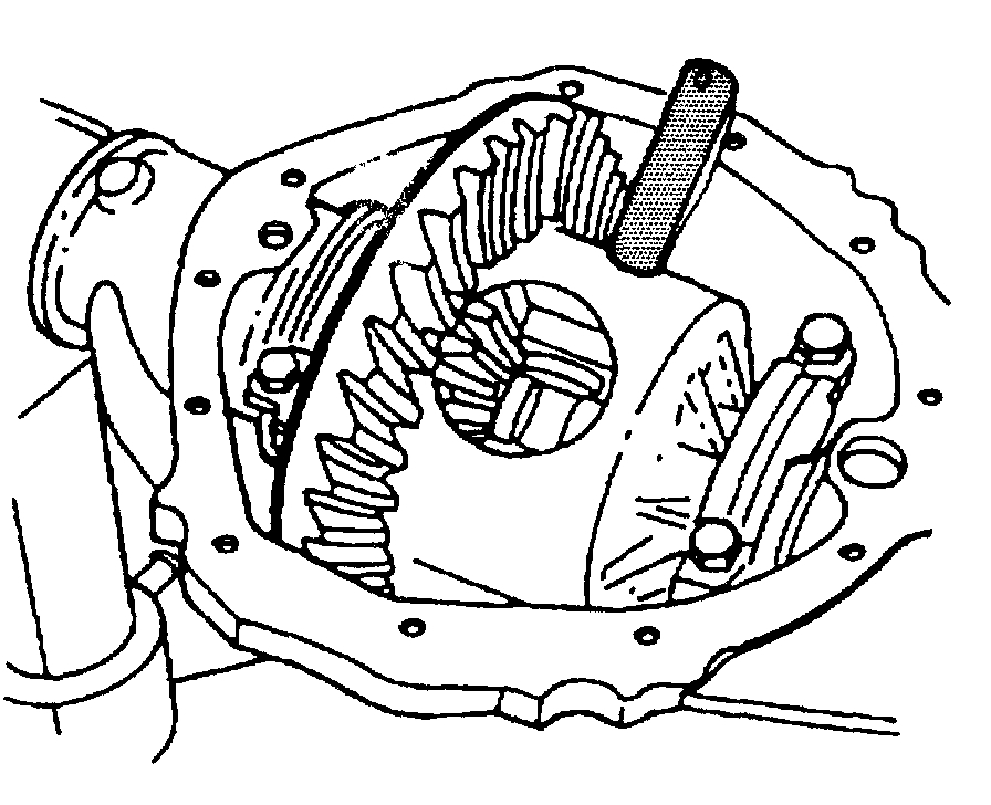 7. On axles with a locking differential, remove the shaft part way. Rotate the case until the pinion shaft touches the housing.