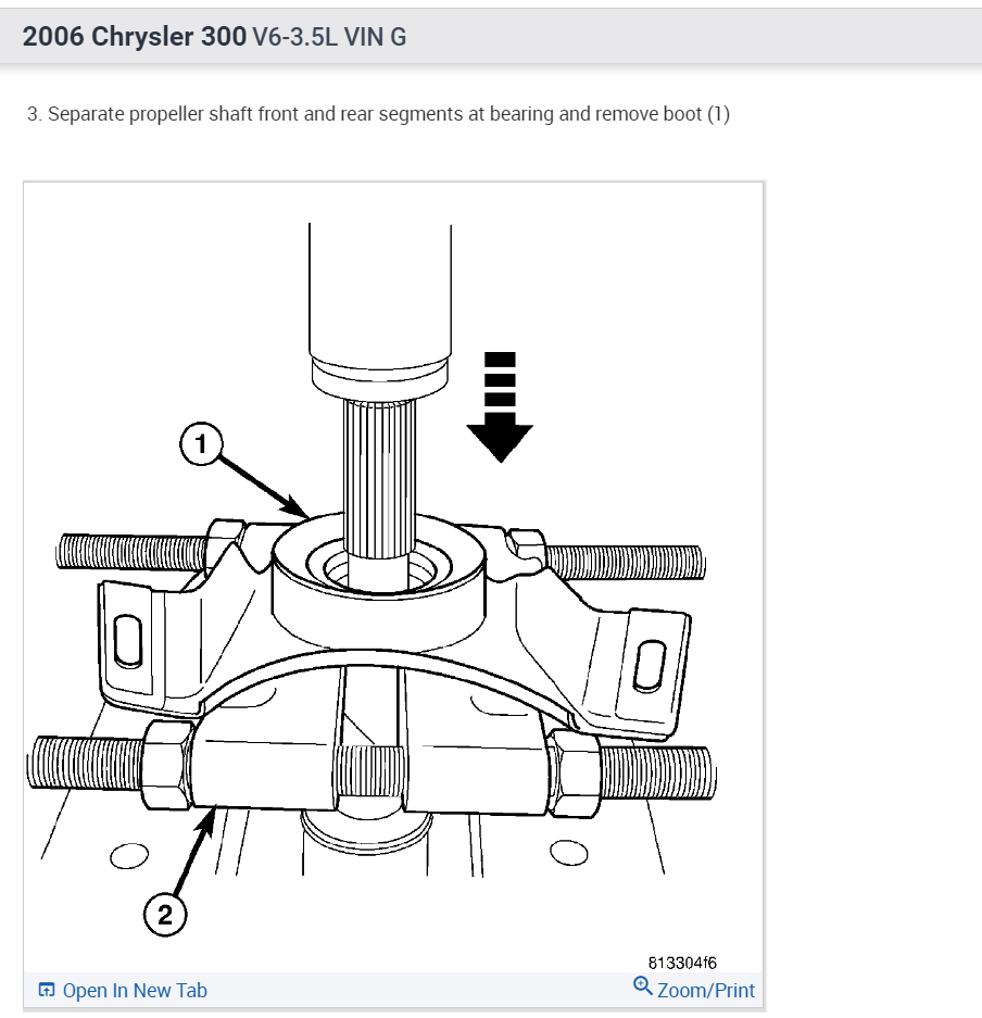 I'm replacing the carrier bearing on the car listed above, rwd. I have my driveshaft taken off, I just can't get the driveshaft to pull apart, so I need help with that.