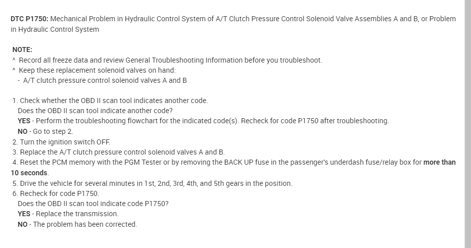 I attached the info for this code. Unfortunately, it just has you replace the clutch pressure control solenoid valves A and B (process attached) and if that doesn't fix it then you need to replace the transmission.