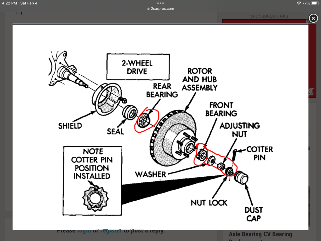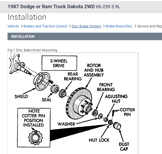 Take a look at the pic below. That is from the manual. Remember, when you torque the spindle nut, make sure to be turning the rotor. That will properly seat it.