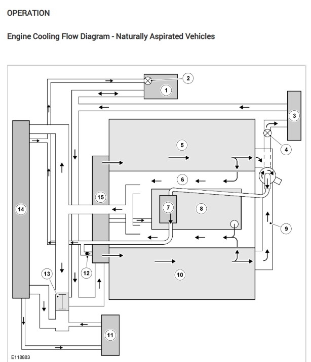 Here's some extra info on the cooling system flow, and other components. I don't see a lower intake manifold, like on a GM with a low manifold that bolts down in between the two heads, but this engine is a complex build for sure, there is a smaller bleeder on the pump itself, I'm not sure if there's a hose to it or if it's for just bleeding air right at the pump, but it's in diagram 6.