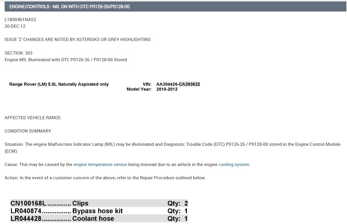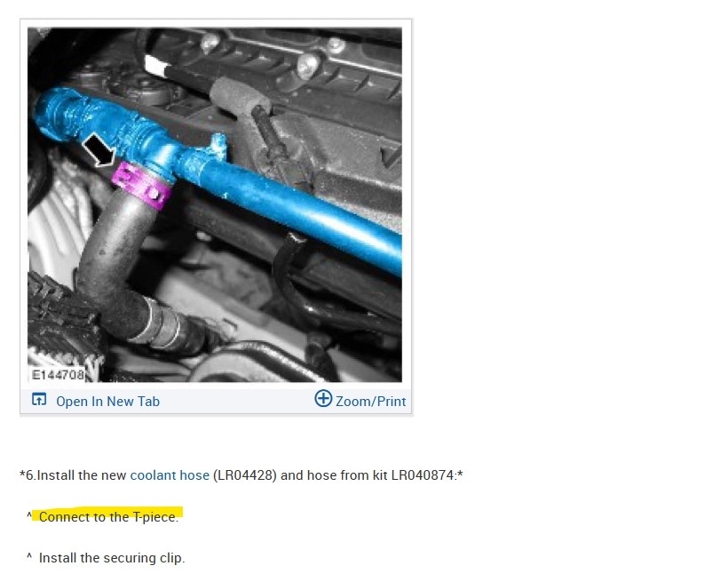 So, here for this TSB they want another hose with 2 T fittings run to the coolant expansion tank to help bleed air out of the system. I would think you could do this without having to purchase these parts from the dealership, you would just need to find a couple cooling system T fittings and a section of coolant hose with some hose clamps to complete this TSB, even if you're not getting the codes setting P0126-26/P0128-00, obviously there's an issue with air pockets in this vehicle, that's giving you a lot of problems.
