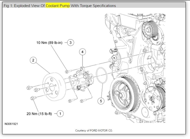 I have attached a diagram showing you the water pump including bolts with torque specifications. Hope this is helpful and if you need further assistance we will be glad to help, thank you for using 2CarPros!